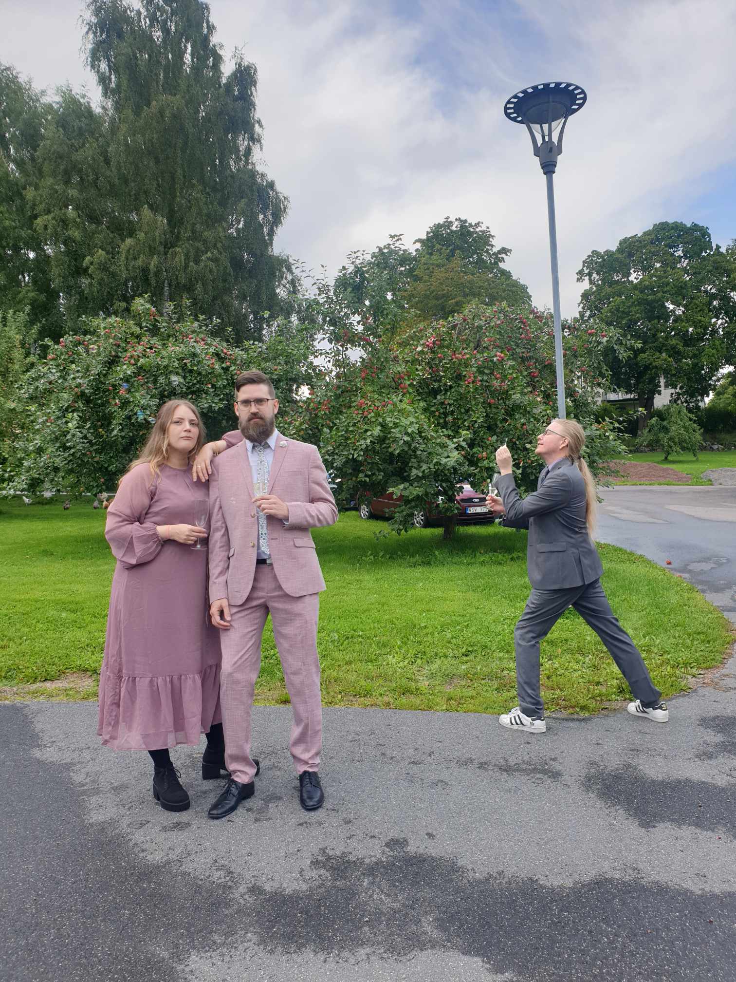 Då vigseln kommer ske på gräsmatta uppmanar vi er att tänka på valet av skor, vi vill inte ha några stukade fotleder pga stilettklackar.